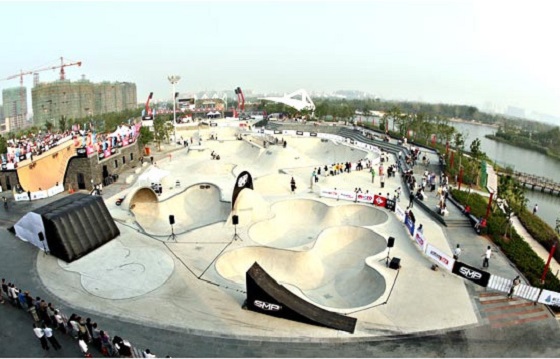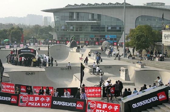 新江灣城SMP滑板公園擁有深度從 一米 到近 六米 的七個形狀各異的碗池、世界最大 四十六米 長的 U 型槽、世界級的街區以及可容納近三千名觀眾的露天體育廣場。