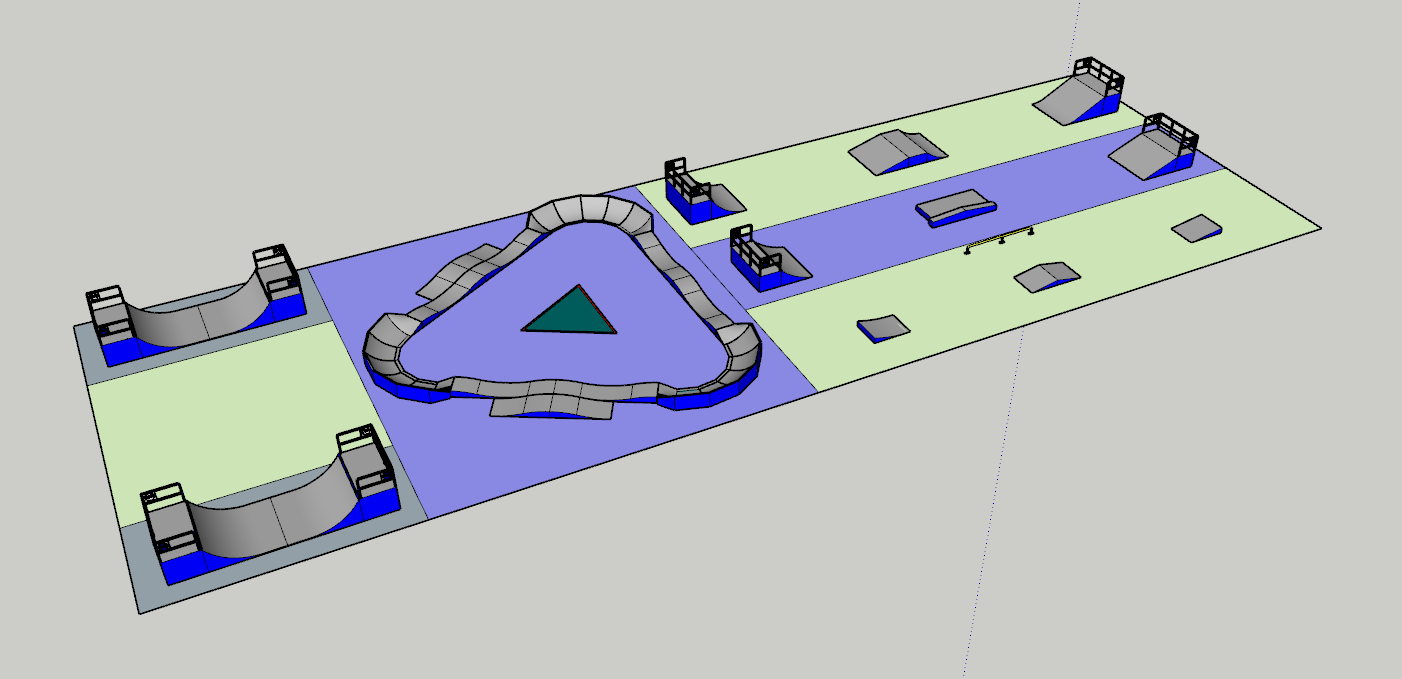 2.規劃設計:需要考慮道具的組合擺放、安全距離、角度、路線設計和難度系數等因素。安全系數必須符合歐盟標準。例如,對于趣味箱,碾磨軌與扶手箱之間的距離至少為1.5米,碾磨軌的邊角應彎曲至45°角。此外,我們還會收集專業運動員的建議,這一點非常重要!